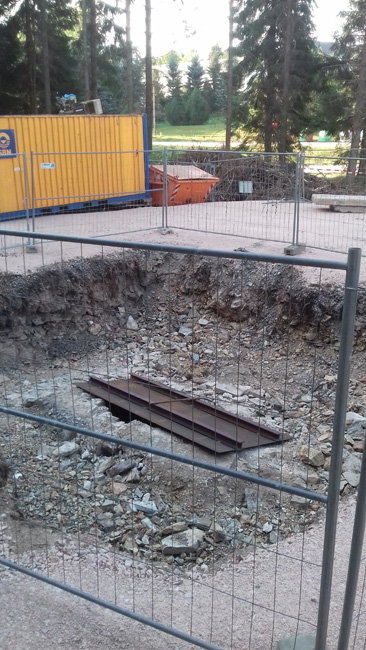Abbildung 33: Zwischen den beiden Baucontainern befindet sich der Schacht, Aufnahme 2019.