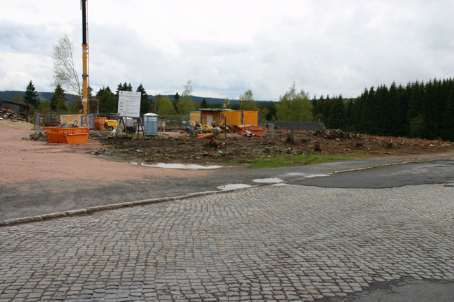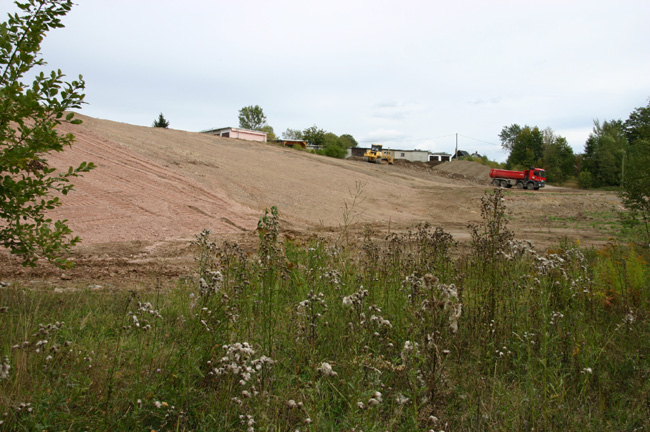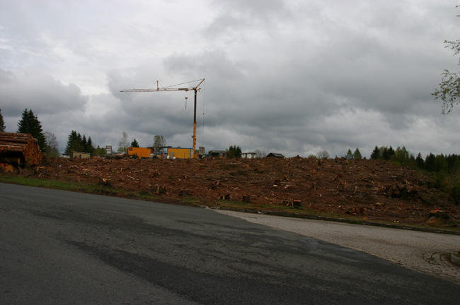 Abbildung 32: Blick von der Schwefelwerkstraße auf die Schachtbaustelle, die Rodung der Halde hat begonnen.