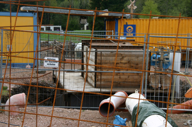 ![]() Abbildung 35: Vorbereitungen zum Abriss der alten Plombe; das linke Rohr dient der Bewetterung, Bildquelle: Projektteam Altstandorte.