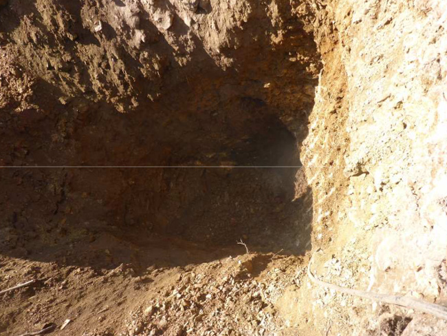 ![]() Abbildung 41: Im Tagebruch werden die Konturen des alten Überhauens sichtbar, Bildquelle: Projektteam Altstandorte.