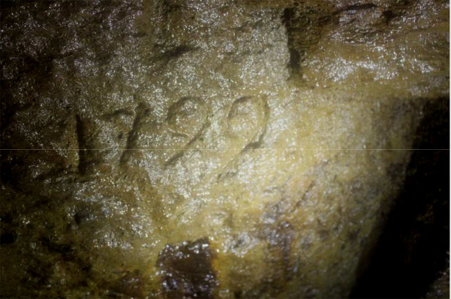 Die Vermischung aus Alt- und Wismutbergbau zeigte sich z. B. im Abbau in westliche Richtung. Die hier eingehauene Jahreszahl 1799 stammt noch aus der Zeit des Schachtteufens und den damals erfolgter Abbauarbeiten.