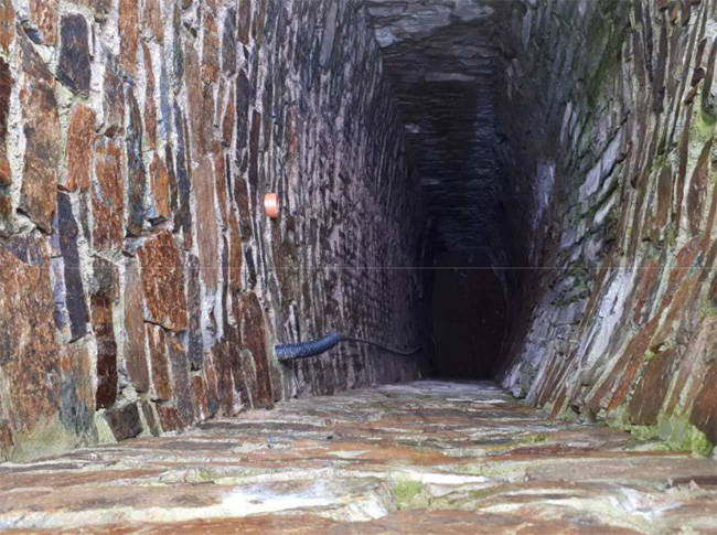 ![]() Abbildung 50: Die sanierte Schachtröhre, ganz unten die Oberkante des Betonscherpropfens, Bildquelle: Projektteam Altstandorte.