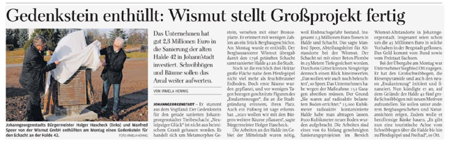 Im Rahmen der Verwahrung der Wismut-Altstandorte rückte