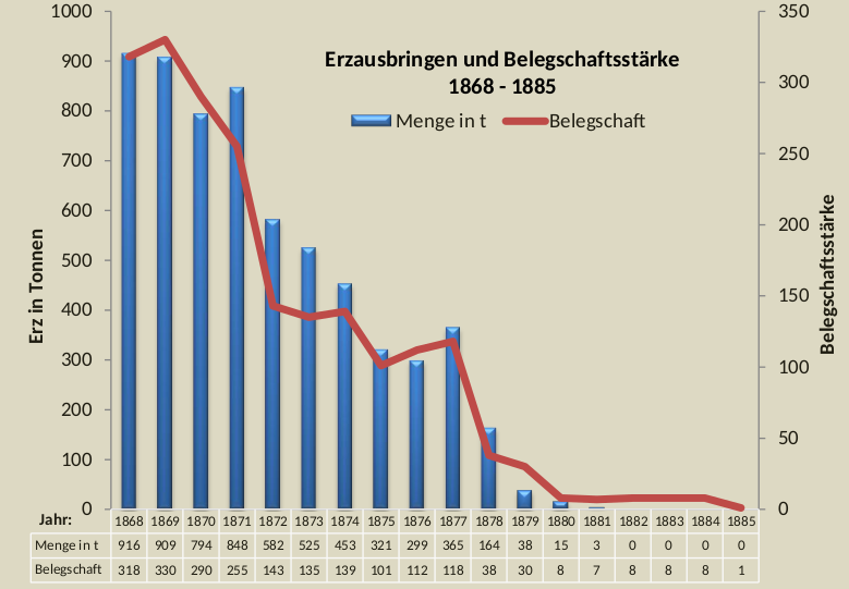 nur noch taube Gänge antraf und keine erzführenden Gänge anschlagen