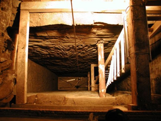 ![]() Der Blick in den alten Kunst- und Treibeschacht während der Sanierungsarbeiten. Quelle: Sammlung Bänsch