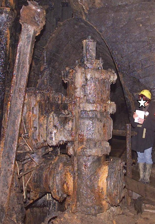 ![]() Regelzylinder der von Bornemann 1863 gebauten Wassersäulenmaschine im Maschinenraum des Josephschachtes auf der Sohle des Adamstolln. Quelle: Sammlung Bänsch
