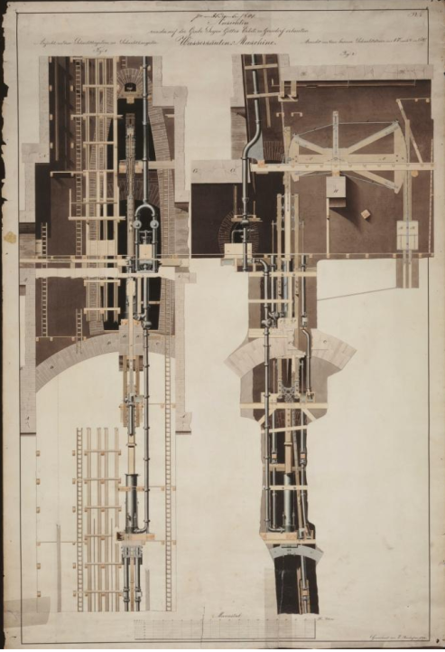 eingebauten Wassersäulenmaschinen dar. Diese sind als eine heute