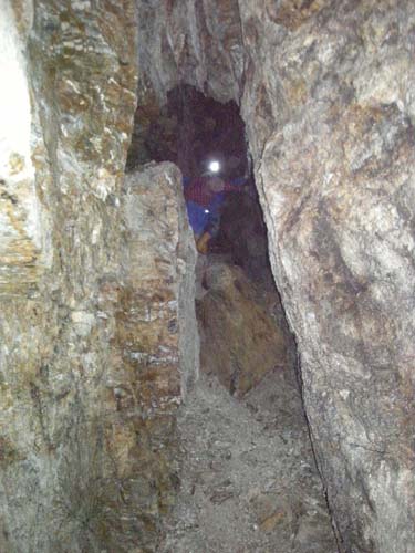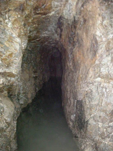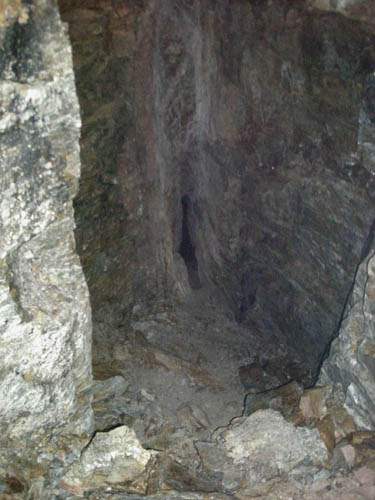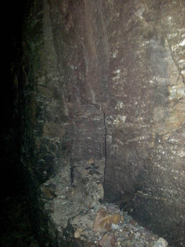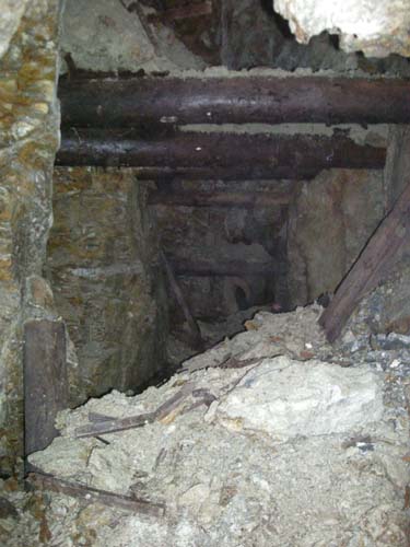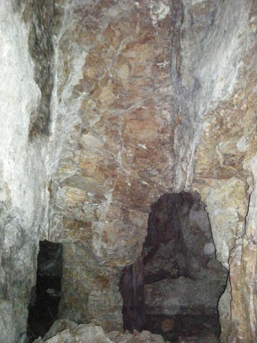 Der Scharungsbereich zweier Spatgänge westlich des Kunstschachtes. An dieser Stelle war das Gebirge ganz besonders instabil. |