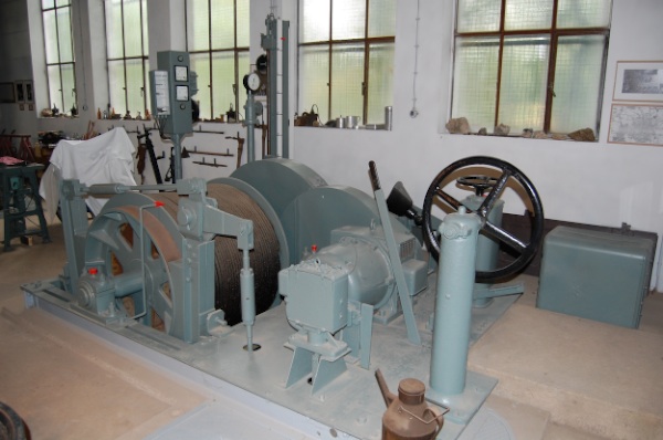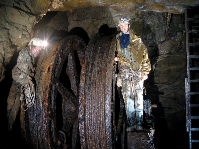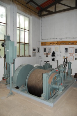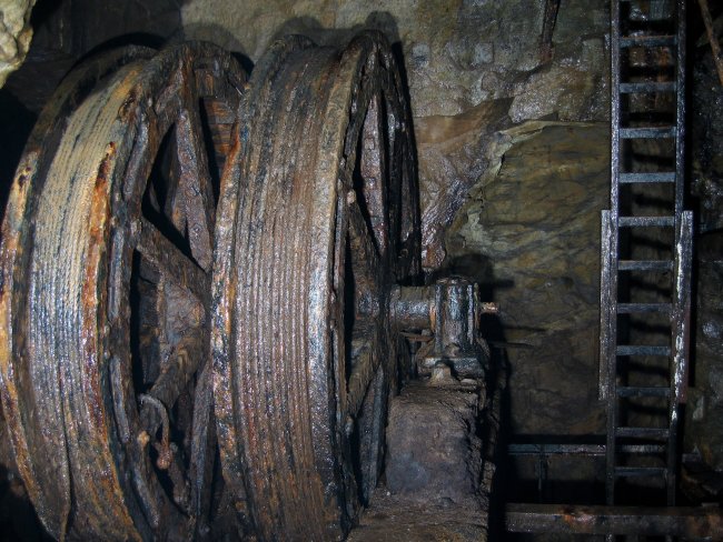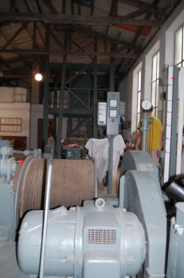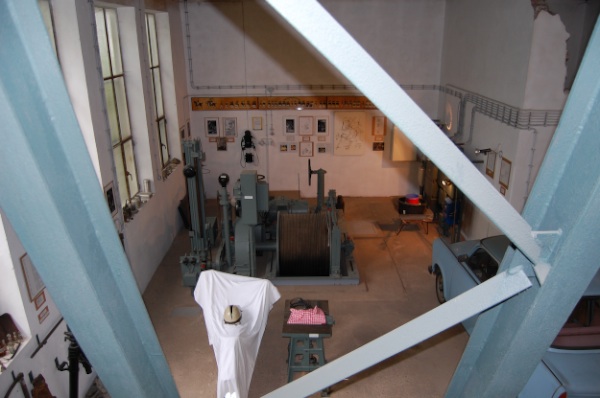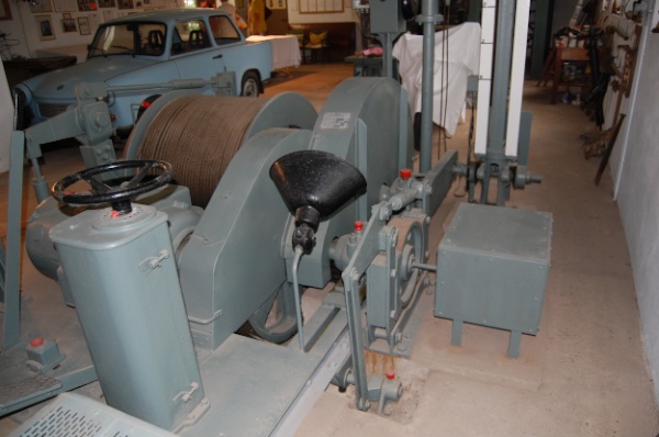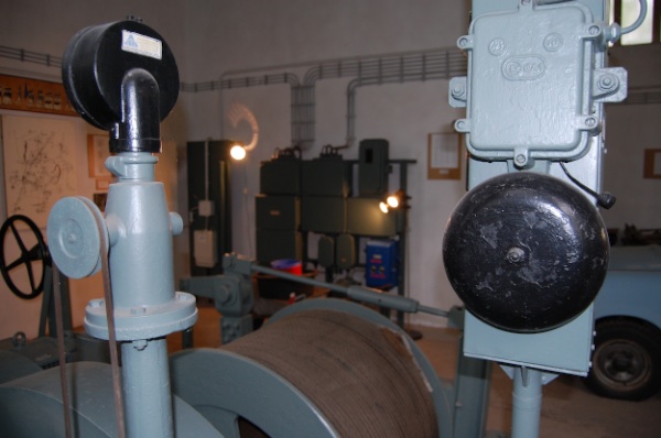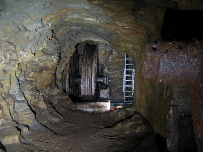 ![]() Ein Blick entlang der Welle zu den Seilkörben. (Foto: A. Rüthrich) |