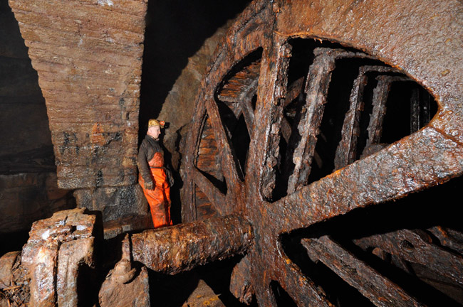 ![]() Das Kehrrad von innen (Foto: Wagenbreth / Zimmermann, Sammlung Voigt, Freiberg). |