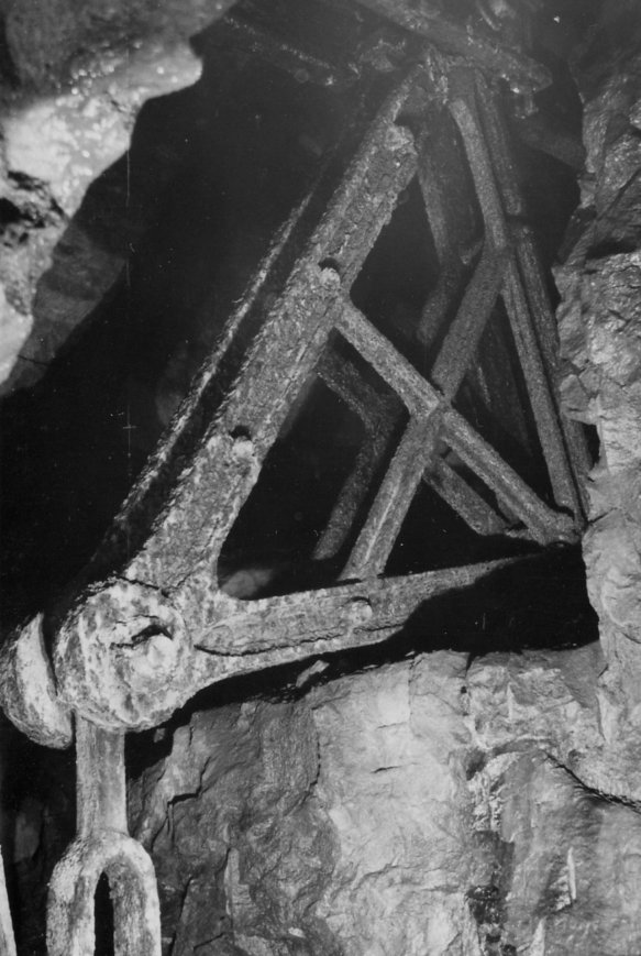 ![]() Ansicht Kunstkreuz mit Gabel zur Aufnahme von Kunstgestänge. Ebenfalls 1954 (Foto: Wagenbreth / Zimmermann, Sammlung Voigt, Freiberg). |