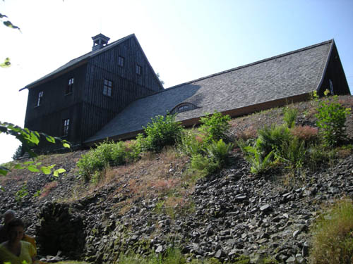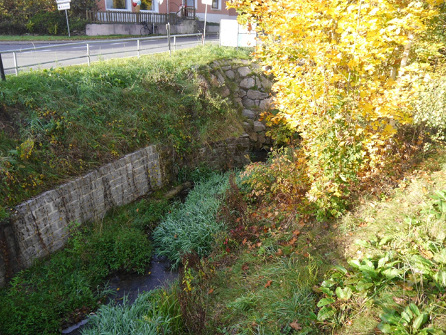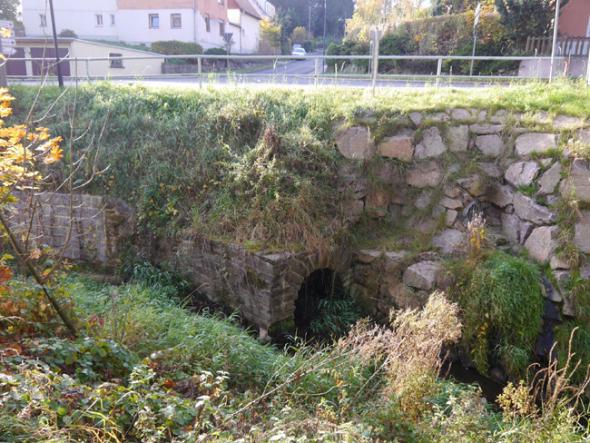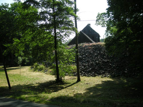 Hier links im Bild am Haldenfuß führt auch der Hilfsstolln zu den Wellenlagern der Radkammern. |