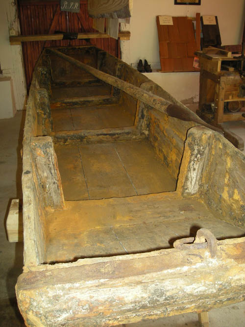 ...und ein Blick hinein: Dieser Kahn befand sich tatsächlich auf dem Rothschönberger Stolln zu Kontrollbefahrungen bis in die 1950er Jahre im Einsatz. |