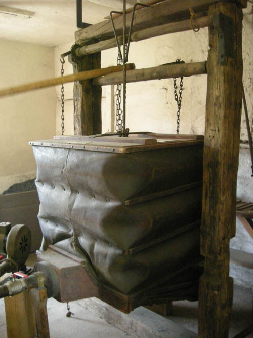 Noch ein Unikat: Dieser Blasebalg war in einer Freiberger Schmiede im Einsatz, wurde vor dem Abriß bewahrt und fand hier ein zünftiges Zuhause. |