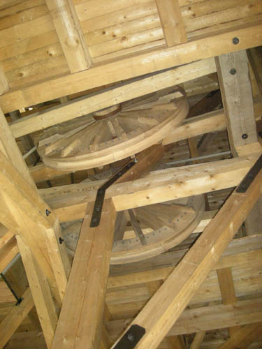 Auch hier wurden die Seilscheiben originalgetreu aus Holz gefertigt. |