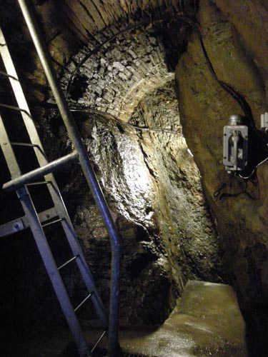 Der hangende Schachtstoß ist mit elliptischem Natursteingewölbe gesichert. Die Handwerkskunst der Vorfahren ist immer wieder eine Augenweide. |