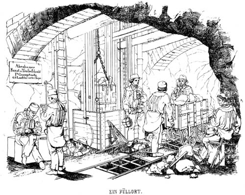 Falls Sie`s oben nicht erkannt haben: Hier der Ausschnitt nochmal größer. Diesen Füllort im Bild oben hat Heuchler dem Abrahamer Schacht nachgestaltet. |