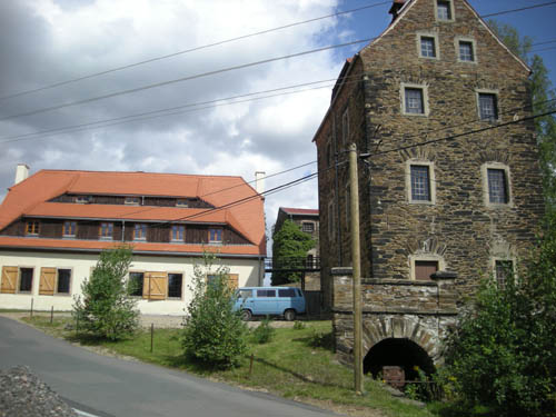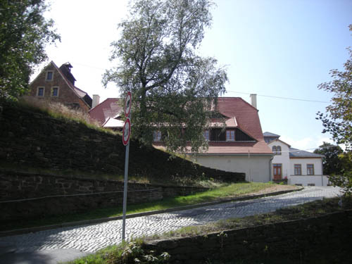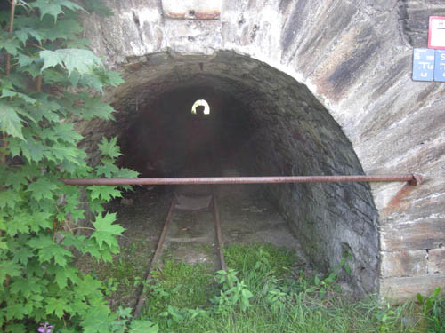 In die Bergschmiede ist ein Motorradhandel eingezogen. Hinter dem Treibehaus schaut die Scheidebank durch - sie wird durch ein Antiquariat genutzt. Unter dem Treibehaus das Südportal des Erzbahntunnels. |