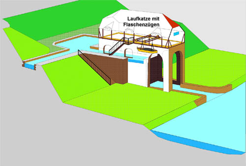 einem Kahnhebehaus aus. Dieses Schiffshebewerk nebst den anderen in Großschirma