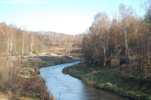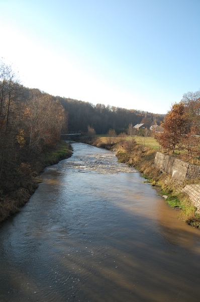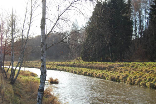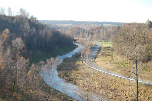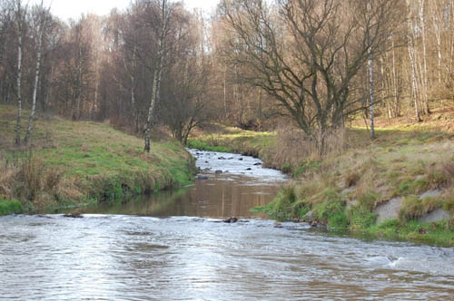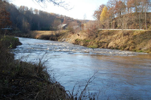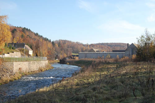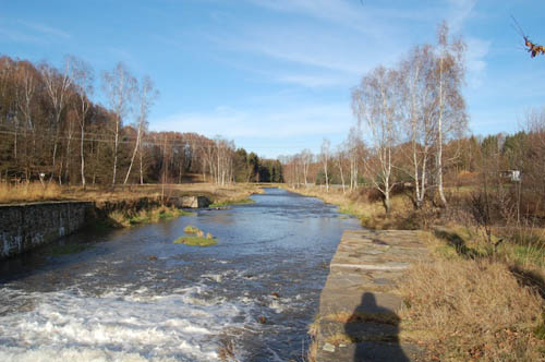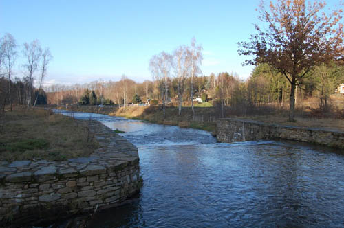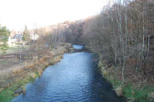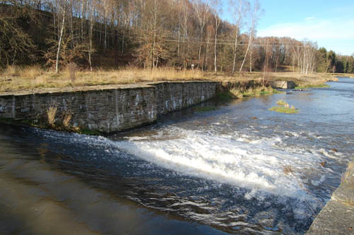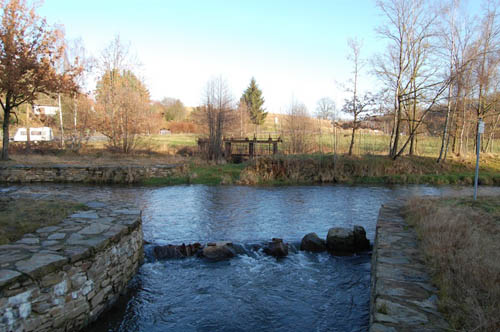 ![]() Blick flußabwärts über das Muldenwehr Richtung der Grube „St. Anna“. |