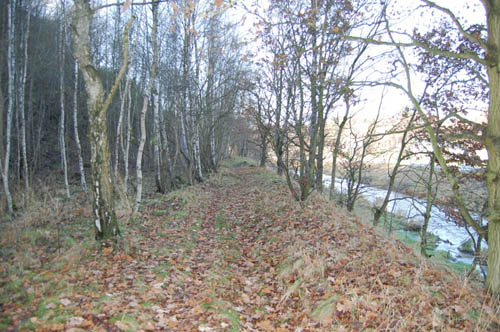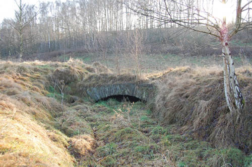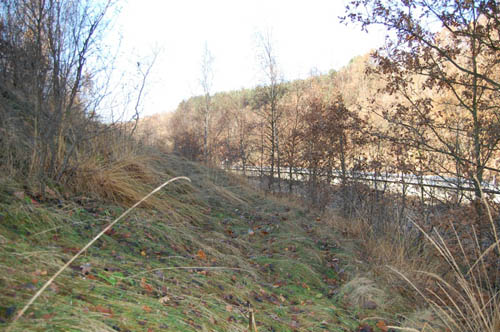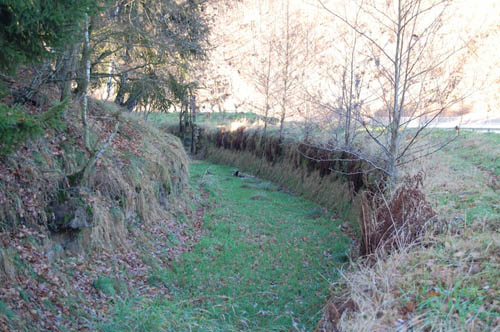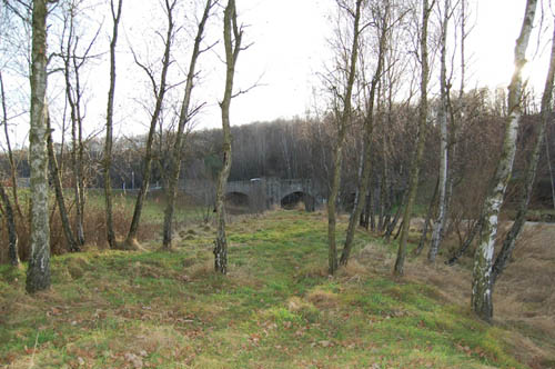 ![]() Hier ist der Kanal schon als Hochbauwerk ausgeführt, zumindest einseitig. Die Mauern sind später mit Aushub überstürzt und begrünt wurden. |