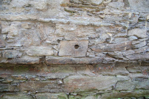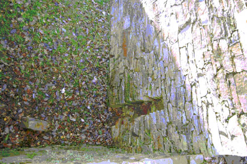![]() Hier hat man eine „Schnellreparatur“ an der verfallenden Kanalmauer ausgeführt. Da auch für die Pappenfabrik Großschirma hohe Unterhaltungskosten durch die Kanalnutzung anfielen, wurden nur äußerst notwendige Reparaturen ausgeführt. Meistens entschied die Kostenfrage über die Art und Weise der Ausführung. Deshalb wurde der Kanalteil zwischen der Schleuse und der Einmündung des Waltersbachs recht früh aufgegeben |