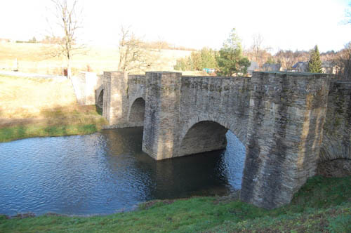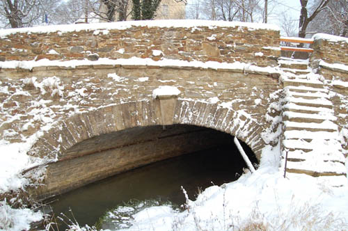 ![]() Hier führt die Großschirmaer Dorfstraße über den Erzkanal. Die Brücke ist beim Kanalumbau 1823 errichtet worden und trotzt noch heute dem stark zugenommenen Verkehr. Der Treidelweg verlief hier auch wieder rechtsseitig des Kanals und wird durch den Treppenaufstieg auf der anderen Seite der Brücke fortgesetzt. |