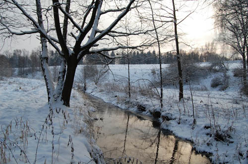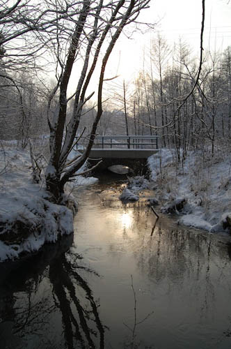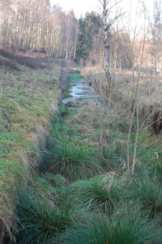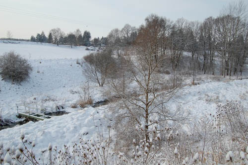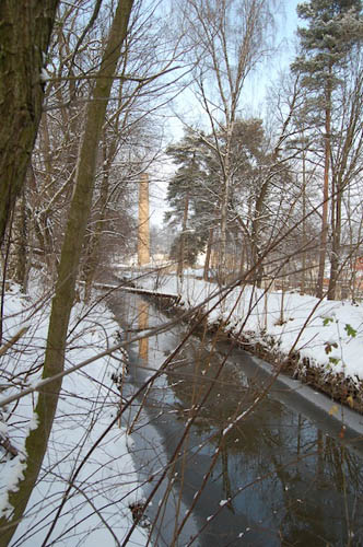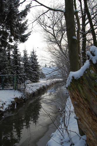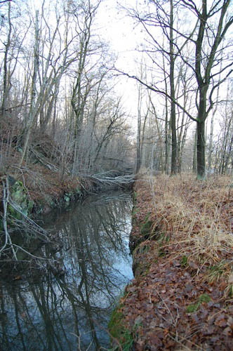 ![]() Trotz der klirrenden Kälte ließ sich der Fotograf nicht von seiner Exkursion abhalten. Allerdings ist es hier nicht mehr möglich, dem Kanalverlauf als normaler Wanderer zu folgen, ohne im sumpfigen Gelände zu versinken. Die Sedimente haben im Verlauf der Zeit den Erzkanal verfüllt und somit dem Wasserstand viel Platz genommen, was sich in den sumpfigen Bereichen am Kanal bemerkbar macht. |