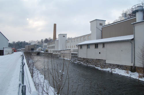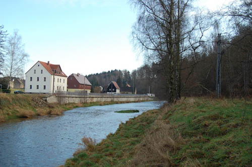 ![]() Ansicht der Bierdeckelfabrik vom Muldenufer aus. Welche Gebäude schon zu Zeiten des Bergbaus standen kann man heute nicht mehr nachvollziehen. |