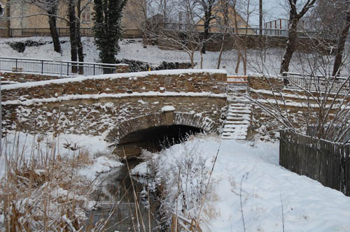 Denkmal: Die Grube „St. Anna samt Altväter“ litt im 17. Jahrhundert an akuten Aufschlagwassermangel für die Wasserhaltung beim Erzabbau auf ihren tiefen Sohlen. Bereits zwischen 1685 und 1715 wurde deshalb vom Münzbach ein Kunstgraben abgezweigt, der mittels eines 188 m langen und 24 m hohen Äquaduktes das Muldental überspannte und das Wasser der Grube auf dem Gegenhang zuleitete. Die dazu nötigen, zwölf steinernen Bögen hatten eine Spannweite zwischen 12 m und 14 m und standen auf den dicken talseitigen Pfeilern der noch erhaltenen Straßenbrücke. Von hier bis Großschirma
