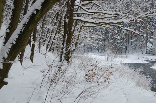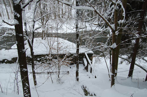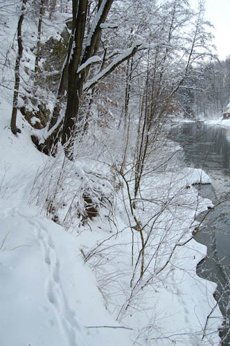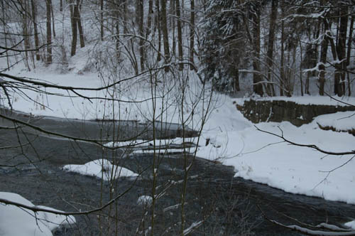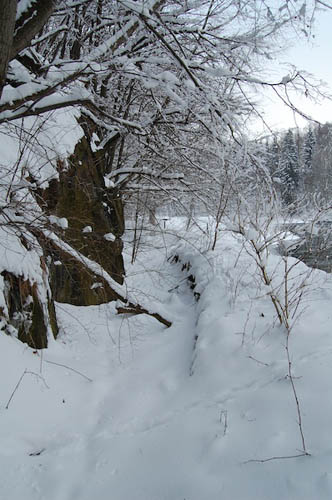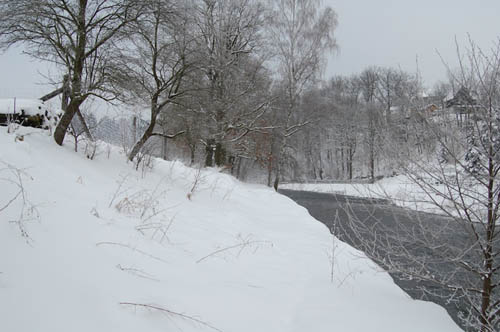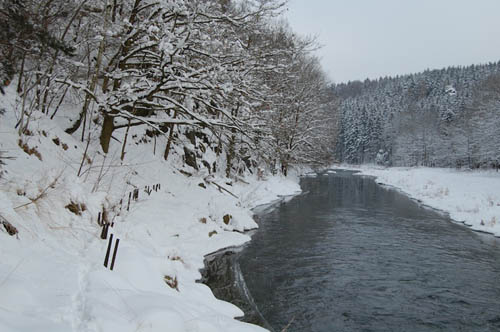 Die Lage des Wehres ist noch gut in der Mulde zu erkennen. |