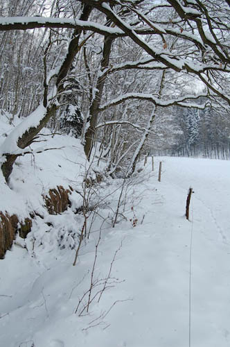 Der Kunstgraben verlief linksseitig des Fahrweges nach Hohentanne und ist noch als „Straßengraben“ zu erkennen. |