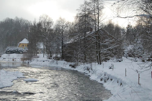 gefasste Wasser aus dem Wehrteich diente auch dem Antrieb der