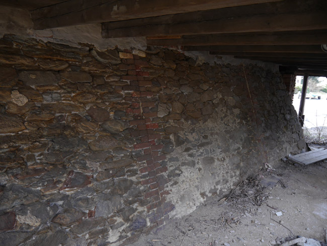 ![]() Der Grundriß des Ofenbauwerks. Über den Aufbau des Rauchsammlers im Inneren können wir leider nichts mehr sagen, da die Schürebene mit einer Betonplatte abgedichtet und damit für Schüttgut tragfähiger gemacht wurde.
